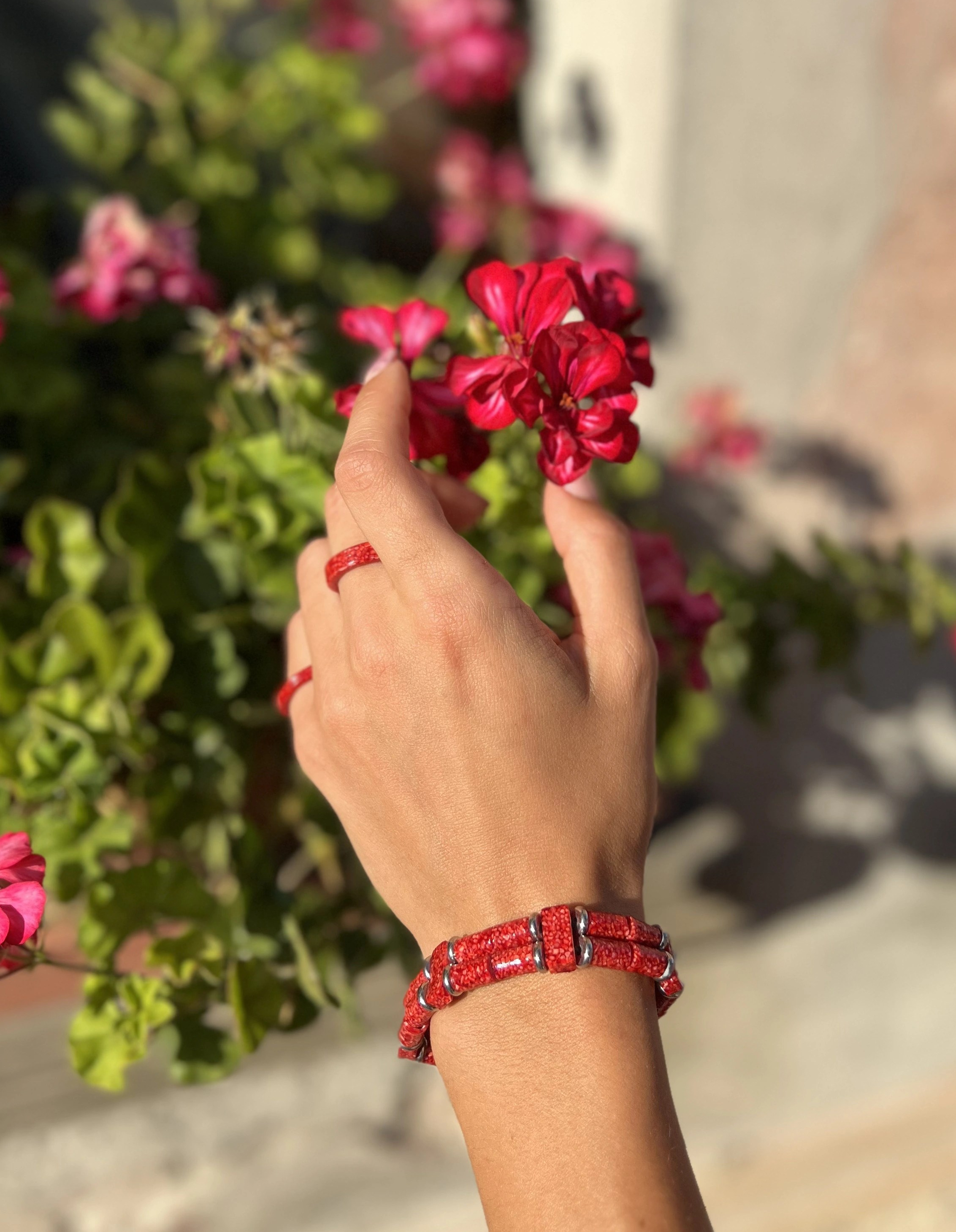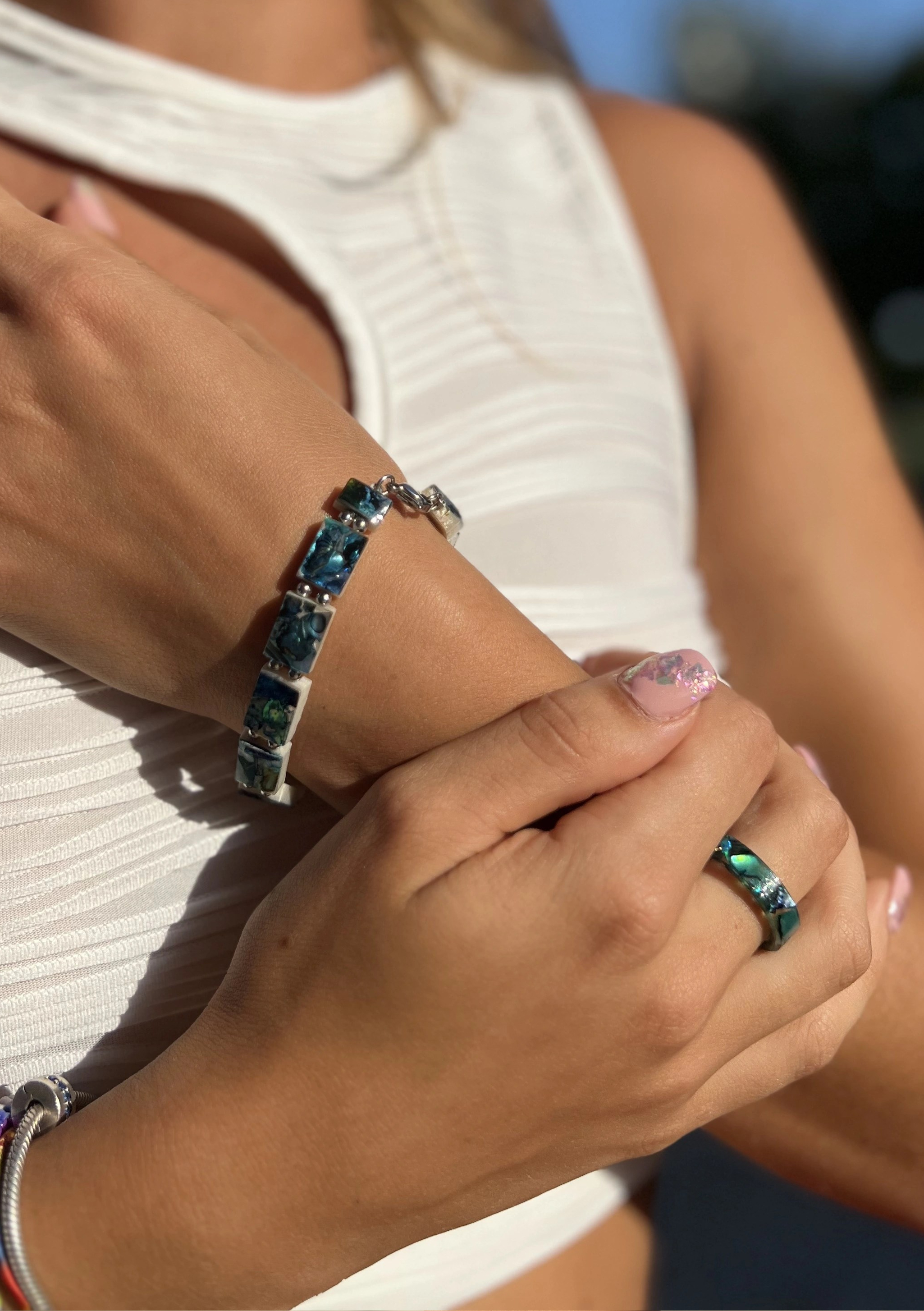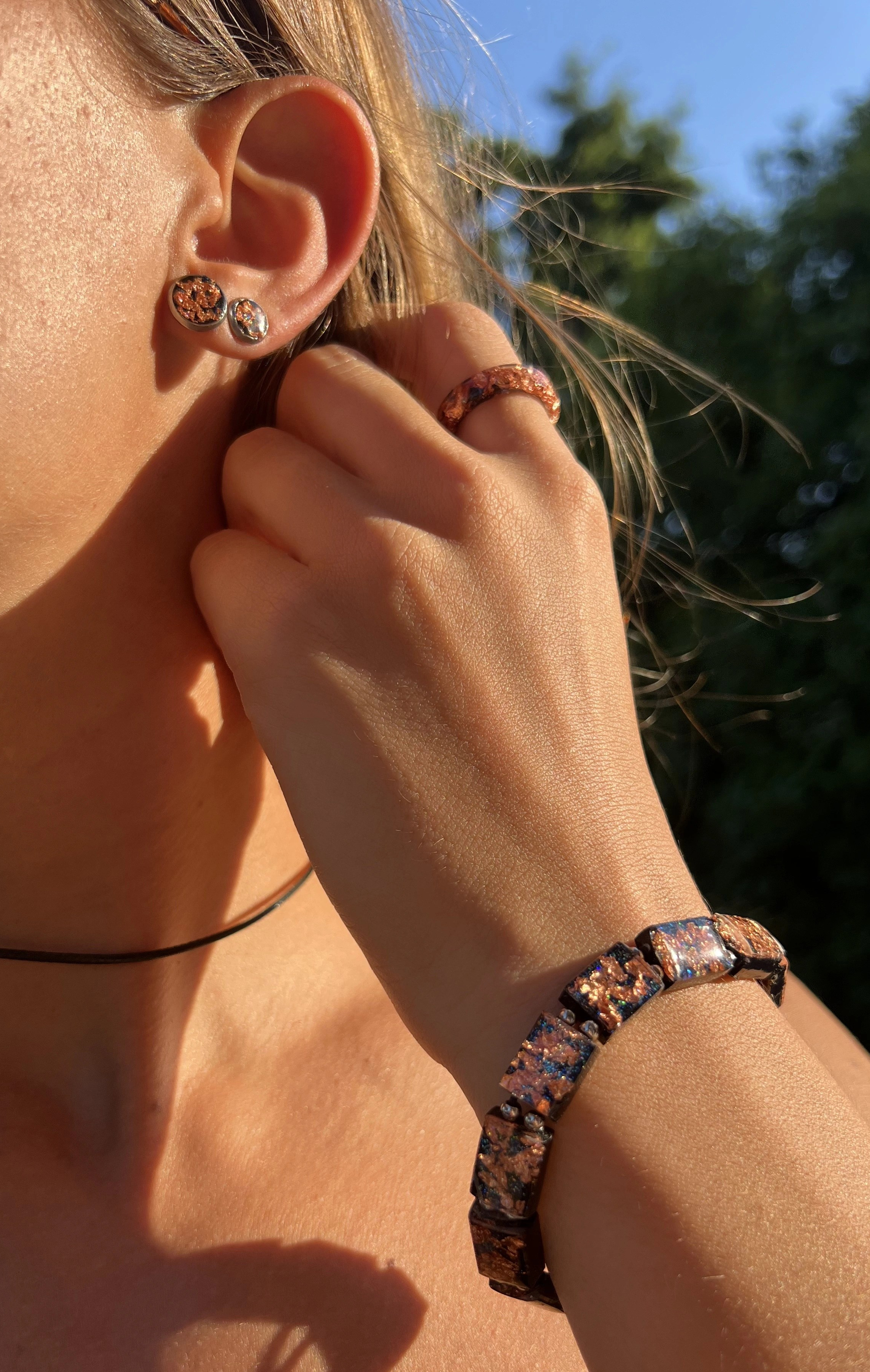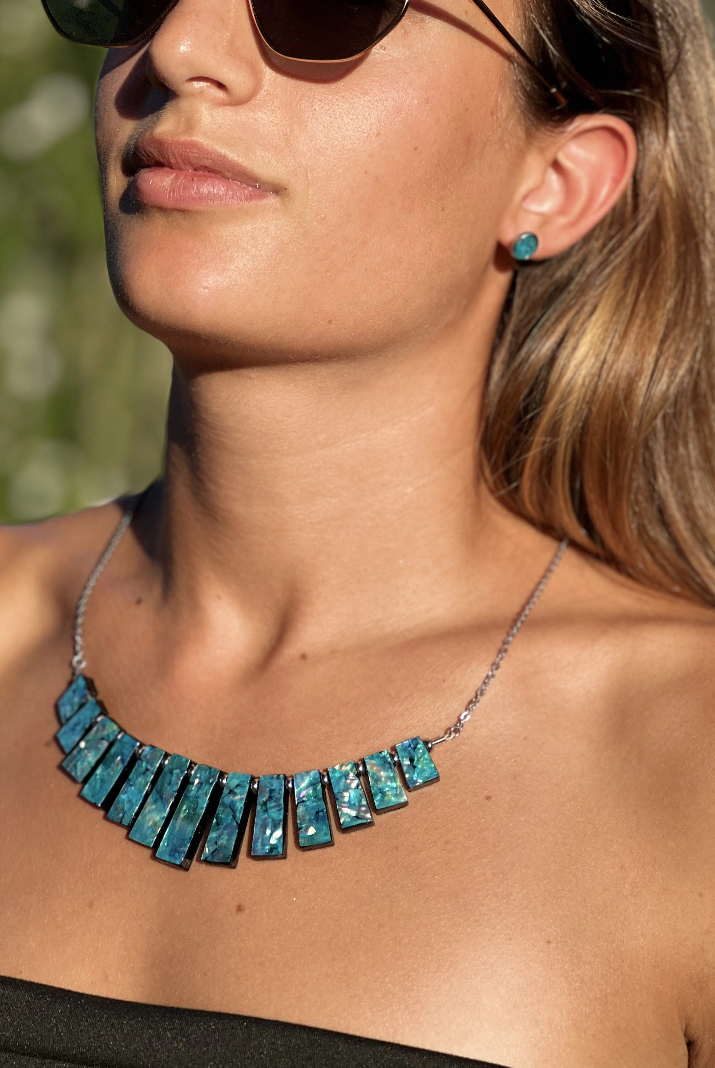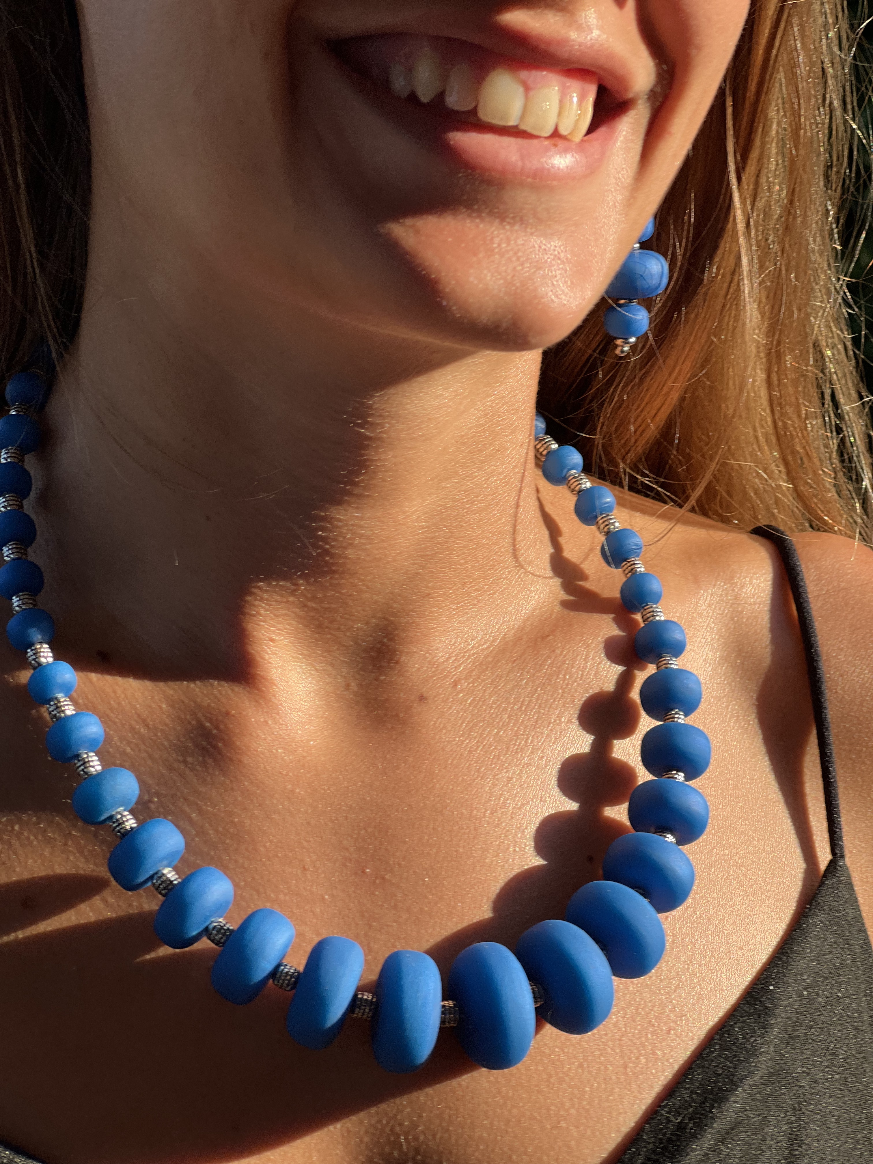 Tutti gli oggetti sono stati realizzati a mano.Le parti metalliche di orecchini, bracciali e collane sono in acciaio inox.